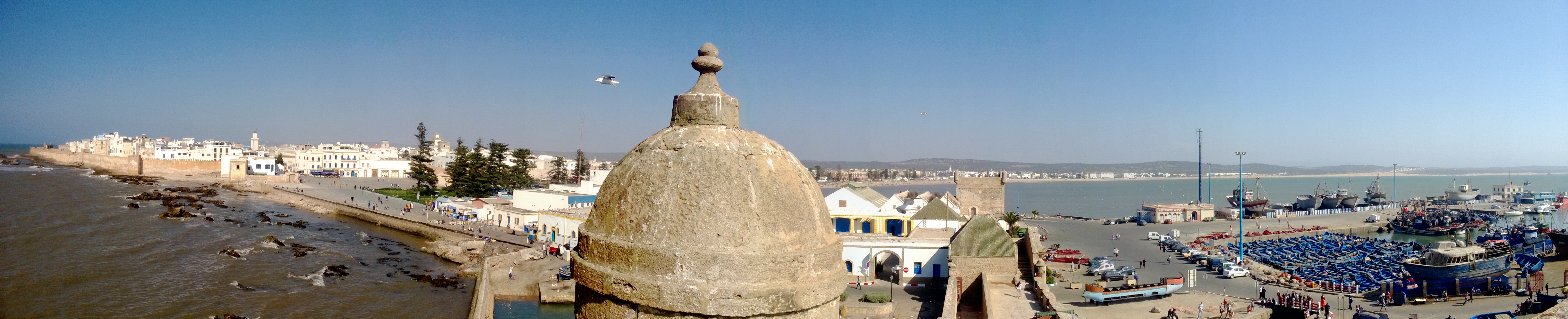 marakeş’ten üç saatlik otobüs yolculuğu ile essaouira şehrine varıyoruz. fas’a gittiğimizde rotamızı önce dağ, çöl ve sonunda deniz olarak belirlemiştik. önce yorulalım okyanus bizi sakinleştirir diyerekten. bu arada marakeş’ten essaouira’ya giderken otobüste tabi ki kevin ve kız arkadaşı ile karşılaştık. hani demiştik ya bunlar hollanda’dan bakkala gider gibi çıkmışlar. ilk karşılaşmamızda kendi rotamızı anlatmıştık daha fes’te iken. ve birebir uyguladılar bizim planı.