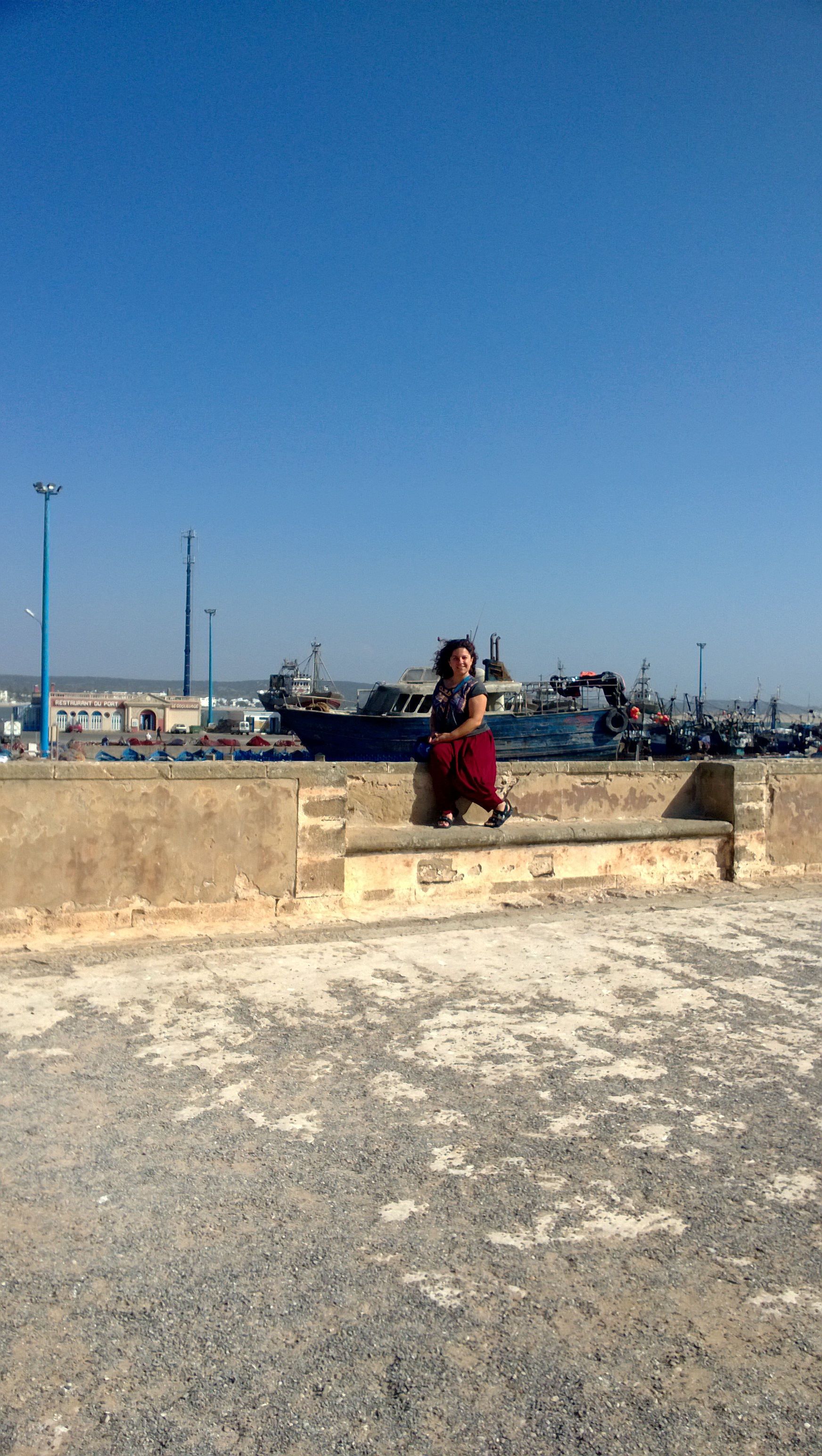 ayrı bir paragraf açmak istediğim bir nokta da essaouira’nın balıkçıları . hemen kalenin yanında yaklaşık on tane balıkçı sergisi ve yanlarında iki üç masalık yerleri. gidiyorsunuz elinizle şu şu şu balıkları yemek istiyorum diyorsunuz. karidesler kalamarlar levrekler ve bir dünya daha balık. kocaman karışık bir tabak yaptırıyorum. yanında iki kişilik salata kola. ve verdiğimiz yüzyirmi dirhem. yani otuz lira. türkiye standartlarına göre inanılmaz bir fiyat ve lezzet harikulade. şehri terk edene kadar buradan yemeye devam ediyorum.