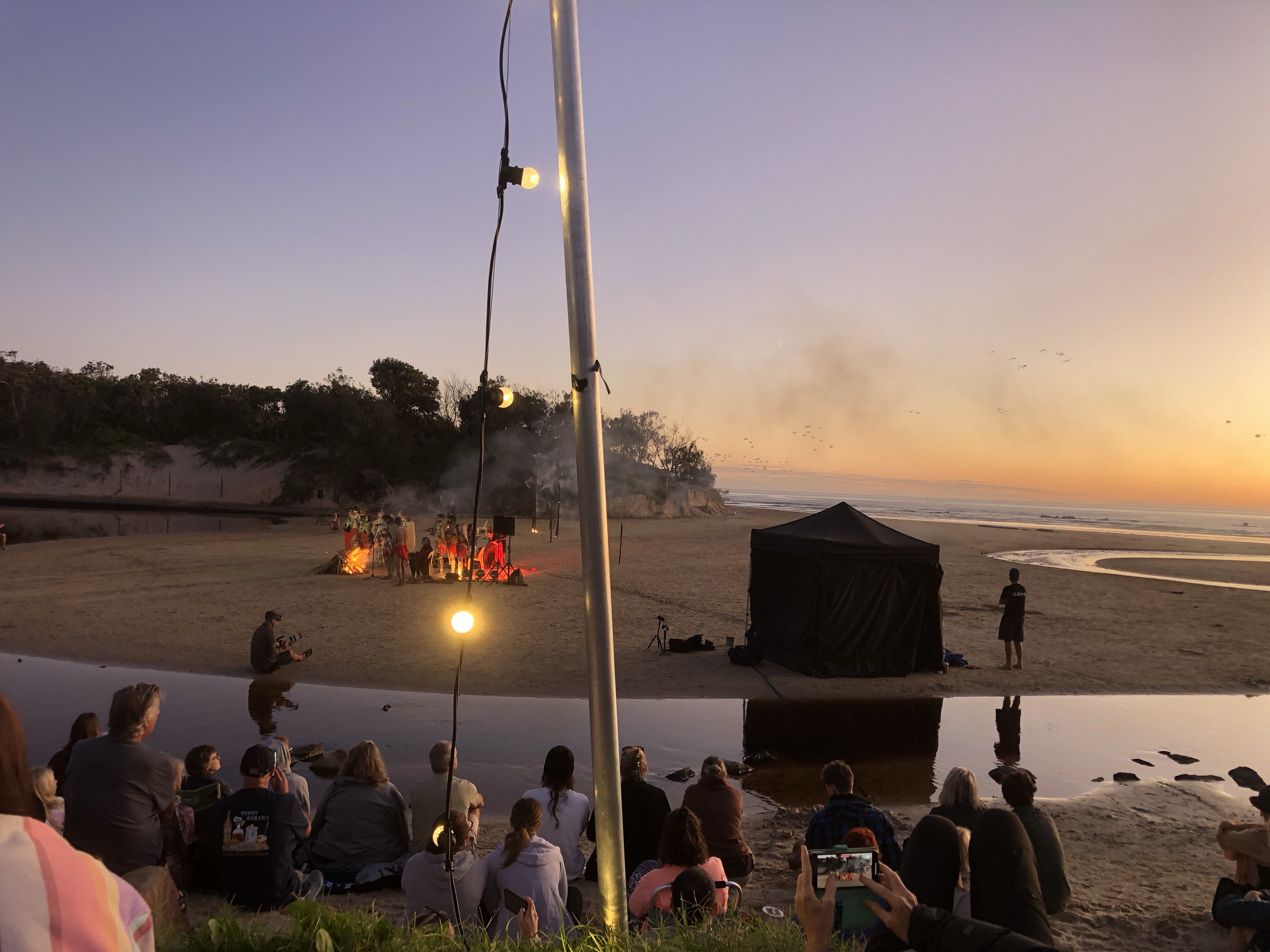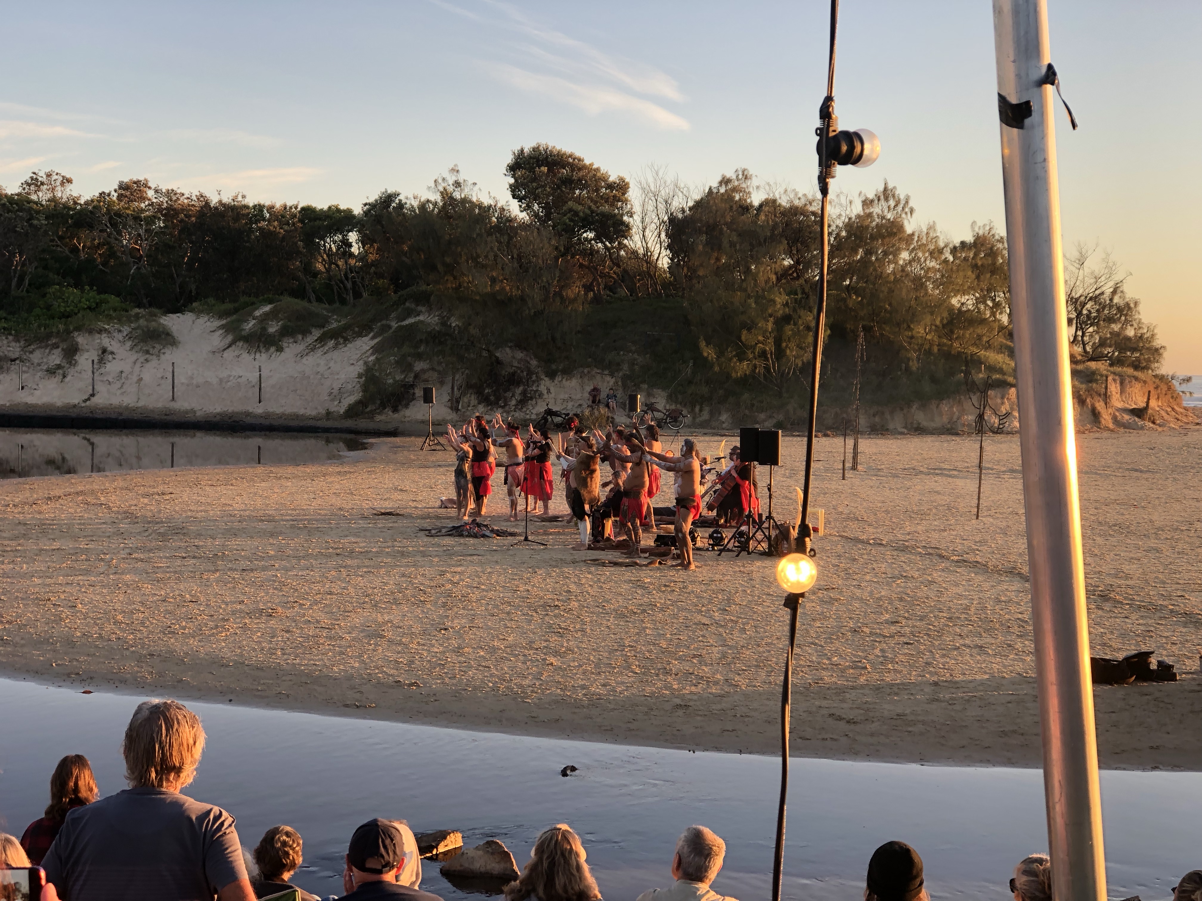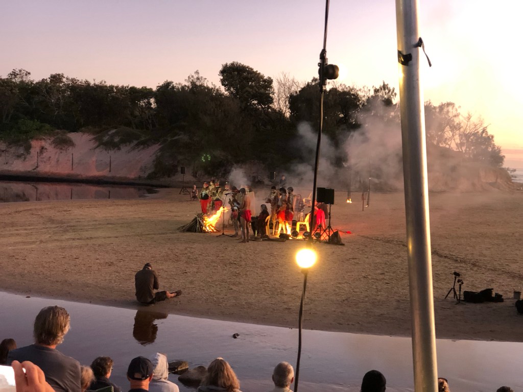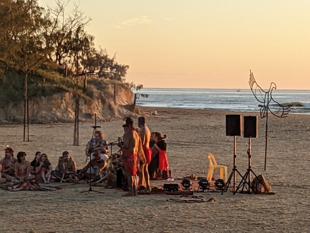 Bu da sunu animsatti. Gecen hafta gunesin dogumunu izledik sahilde. Gun denizin ustune batmiyor. o guzel renkleri manzarayi yasamak icin dogumuna yetismen lazim. Ustelik belediyemiz de bir festival kapsaminda Aborjin Gun Dogumu seramonisi organize etti. (Dawn Awakening adli). Elbette bu bir show idi yani gercek bir aborijin toreni degil ama Avustralyaya geldigimizden beri ilk kez boyle bir etkinlige katilmis olmak, sabah 4’te sahile yuruyup, yuzlerce insanin havlusunu, kilimini, sandalyesini kapip ayni istikamete yurudugunu gormek, ve o ani onlarla paylasmak gercekten tazeleyici, huzur ve cosku veren bir deneyimdi. Hello mental health! (Amansiz gomucu degilim demistim ya, unut onu okuyucu, gordugun gibi takinca takiyorum)