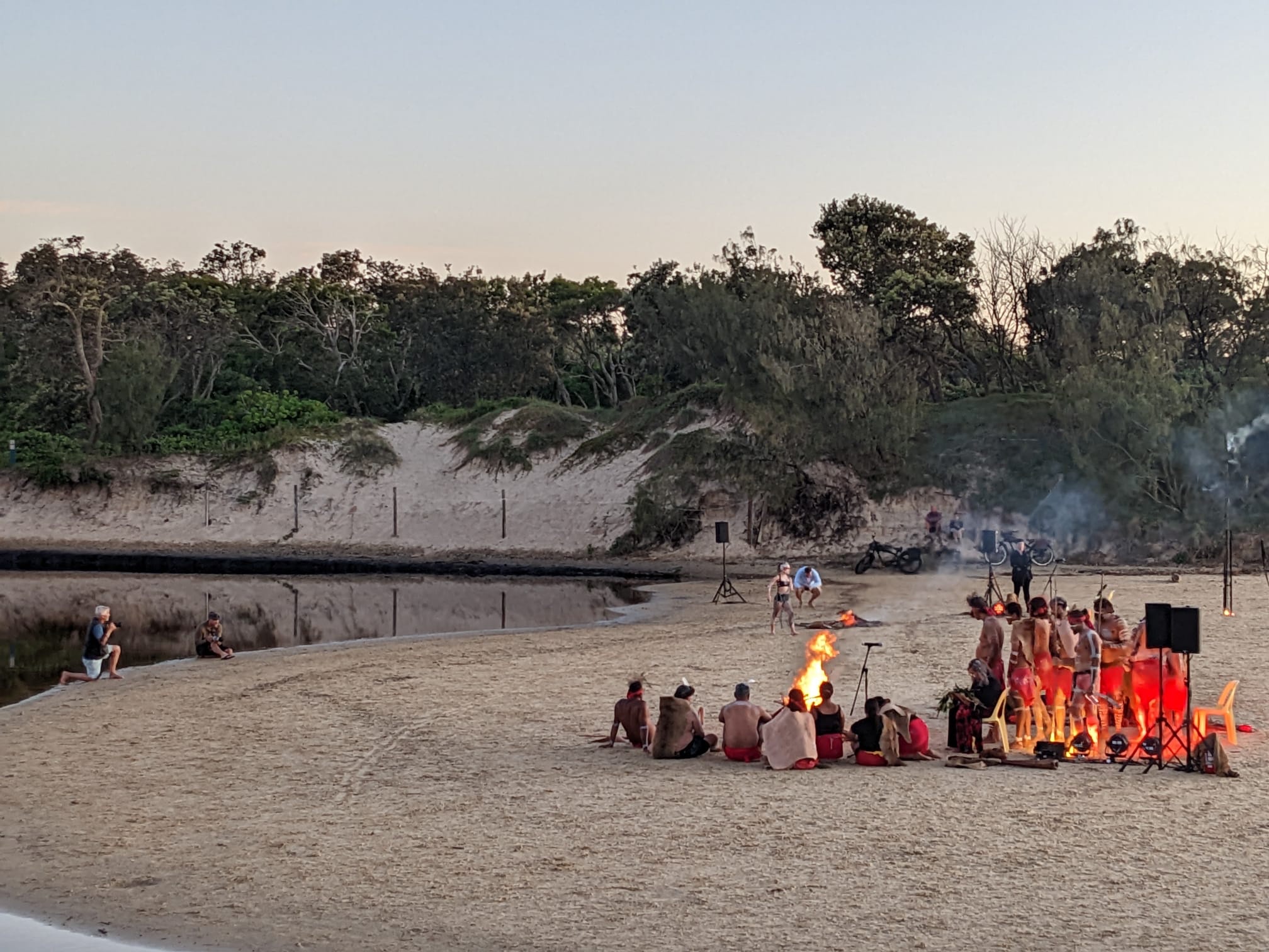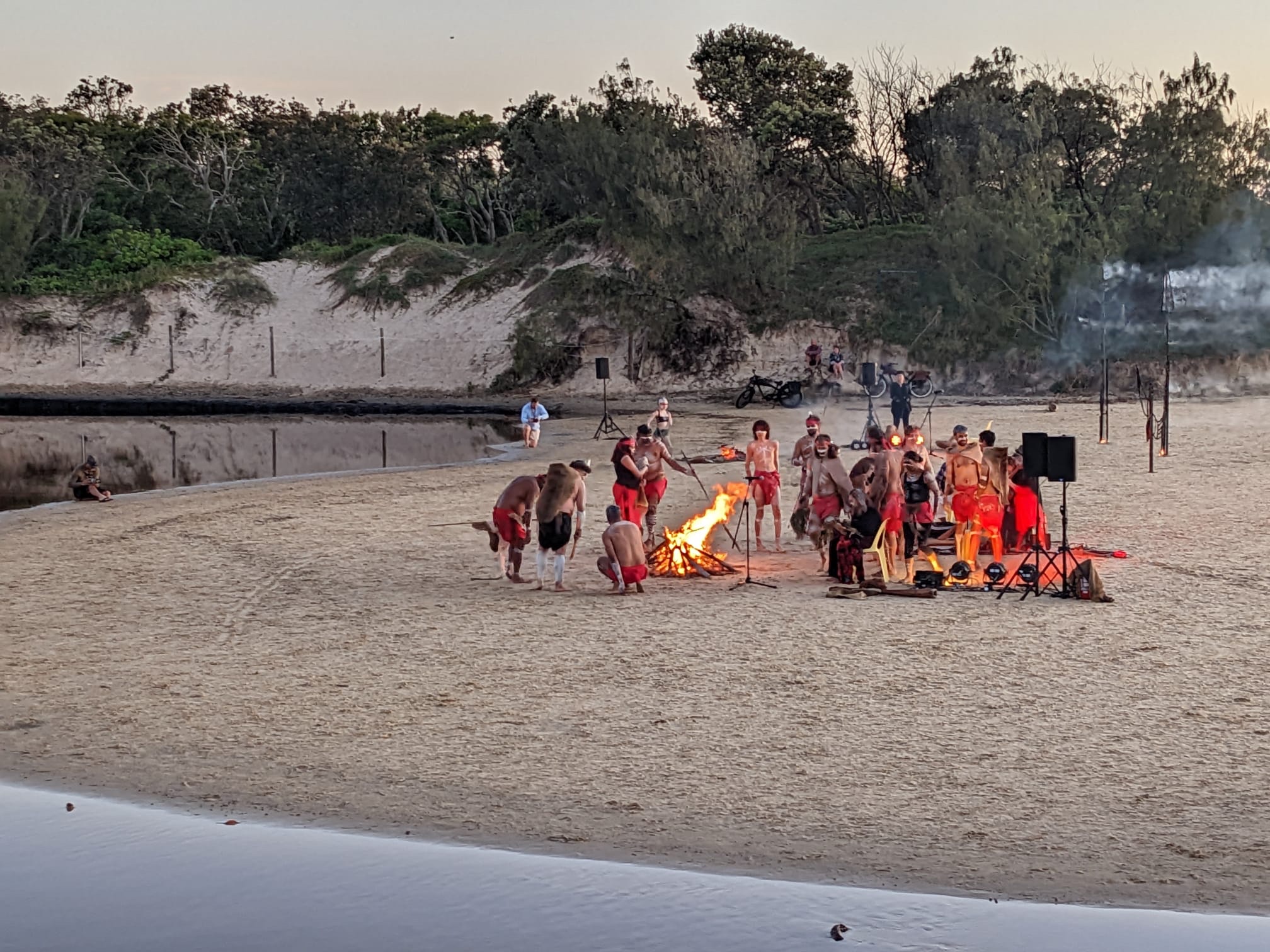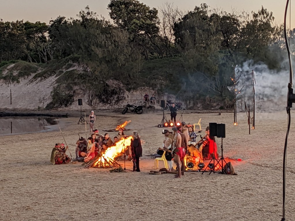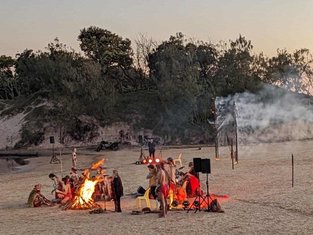 Bu da sunu animsatti. Gecen hafta gunesin dogumunu izledik sahilde. Gun denizin ustune batmiyor. o guzel renkleri manzarayi yasamak icin dogumuna yetismen lazim. Ustelik belediyemiz de bir festival kapsaminda Aborjin Gun Dogumu seramonisi organize etti. (Dawn Awakening adli). Elbette bu bir show idi yani gercek bir aborijin toreni degil ama Avustralyaya geldigimizden beri ilk kez boyle bir etkinlige katilmis olmak, sabah 4’te sahile yuruyup, yuzlerce insanin havlusunu, kilimini, sandalyesini kapip ayni istikamete yurudugunu gormek, ve o ani onlarla paylasmak gercekten tazeleyici, huzur ve cosku veren bir deneyimdi. Hello mental health! (Amansiz gomucu degilim demistim ya, unut onu okuyucu, gordugun gibi takinca takiyorum)