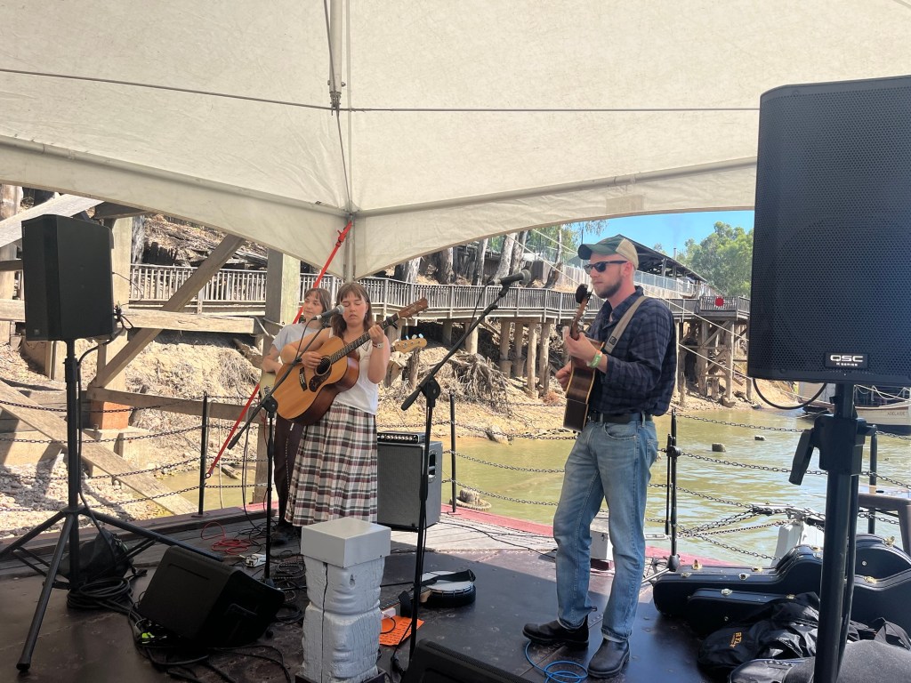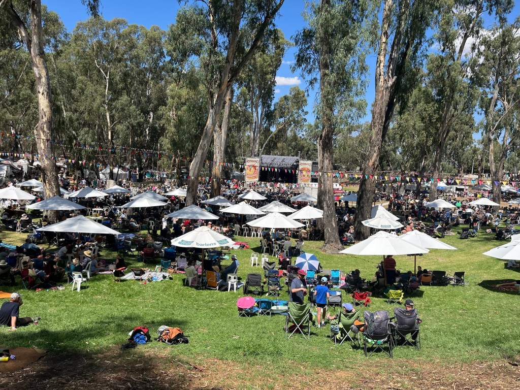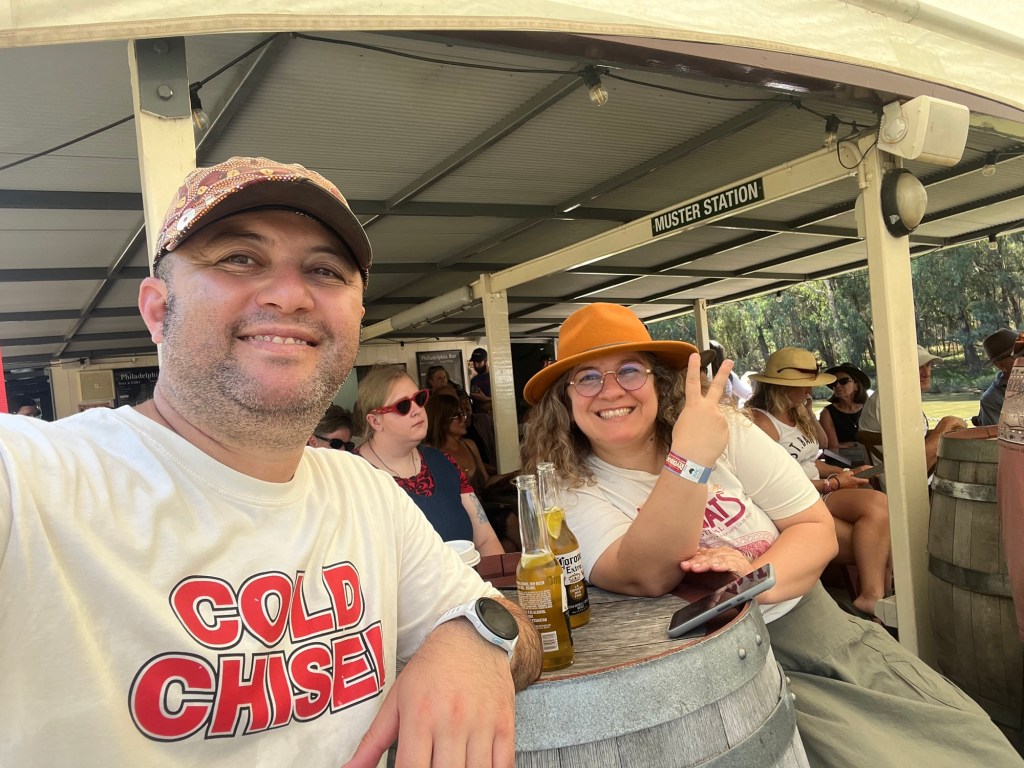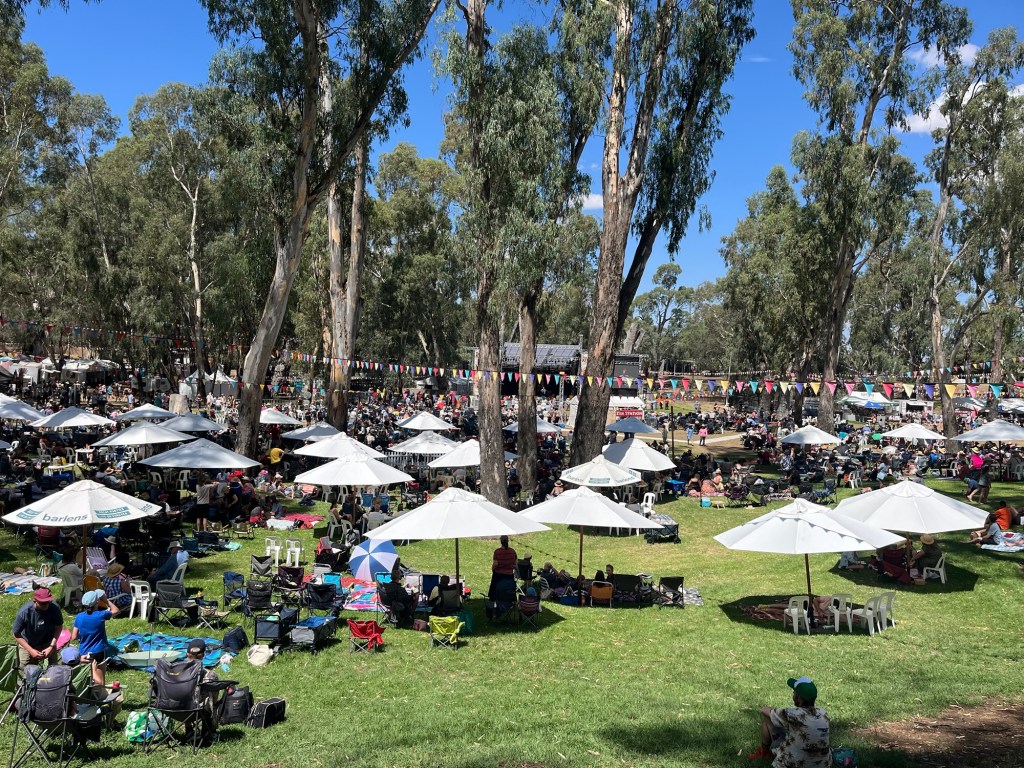 Festivalin ikinci günü, yani cumartesi alandaydık. Önce eski usül, yandan çarklı teknede, Murray nehrinde açılıp, Norwood adlı bi grubu dinledik. Sabah kahve içerken dinlenicek şarkılar playlistine atılacak bir grupmuş, sakin sakin nehirde akarken iyi geldi. Sonra öğlen bir buçuk gibi, cipsimiz, çeri domateslerimiz, çengelköy salatalıklarımız, eski kaşarımızla alandaki yerimizi aldık. Saat bir buçuktan, güneşin battığı dokuza kadar alanda gölge peşinde koştuk. 33 derece sıcakta, ayıldık, bayıldık, aha şurda gölge var diyip, piknik sandalyeleri ve yiyecek çantamızla, kah oraya kah buraya koştuk, başıboş çocuk terörü arasında(family friendly festival) on, on beş kere yer değiştirdik,o ara çıkan boktan bütün grupları dinledik. Line up gerçekten çok boktandı. Taki güneş batıp, oh diyene kadar. Günün son grubu, Living End çıktı. Doksanlar sonu, ikibinler başı punkrock grubu imiş. Bizim Kurban, Athena arası. Ne iyi geldiler be. Oh diyerek gittik, yol üstü motelimize.