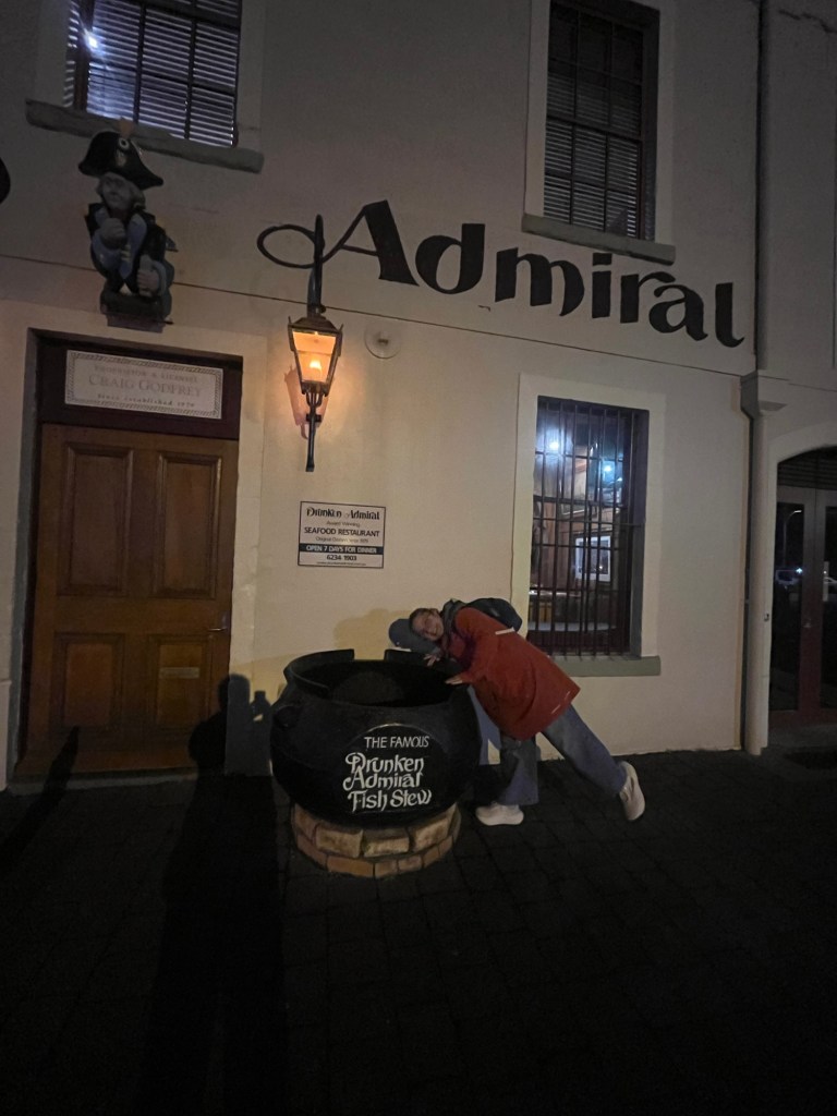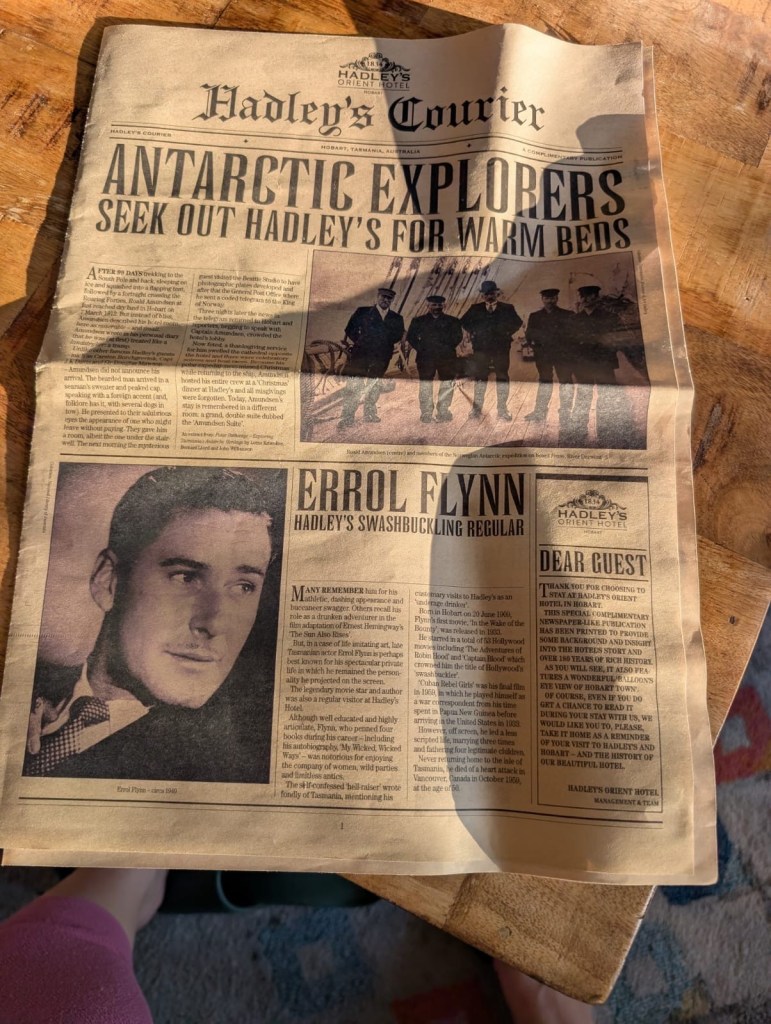 Ha, evet, Hobart’a gitmiştik biz. Onu anlatıcaktık. Tazmanya, ah Tazmanya, tassie. Yeşilin yeşil, mavinin mavi, koyunun koyun, okyanusun okyanus olduğu memleket. Güney kutbuna en yakın olduğumuz nokta. Üç günlüğüne gittik, yirmi sene anlatırız. Balığa, deniz ürünlerine, keyife, guinnese doyduk. Olabildiğince tarihi, ilk kutub kaşifi bi abimizin kaldığı The Hudley otelinde kaldık. Zamanı 1873 gibi dondurmuşlar, yerler halılı, merdivenleri gıcırtılı, odaları yüksek tavanlı güzel bi otelimizdi. Akşamları barı dört gibi açılıyor, dört altı arası happy hour, mesut süre desek yeri. Yaş ortalaması 183 olan otel müşterileri ile çok eski, vintage ötesi koltuklarda içilen biralar. Yan koltukta, yaşlı amerikalılara amerika maceralarını anlatan yaşlı osuruk aussiler. ( Gülce’den notlar: ilginç bir şekilde bu tatilde beni en çok etkileyen şeylerden biri bu otel oldu. Ülkenin en eski ve hala işleyen oteli diye okudum. Kimler gelmiş kimler geçmiş. Aslen Tazmanyalı ünlü Hollywood yıldızı Errol Flynn daha 18 yaş altı iken gelir içer takılırmış burda. Tazmanya bülbülü dedikleri opera sanatçısı Amy Sherwin burada konser vermiş de adını bir salona vermişler. )